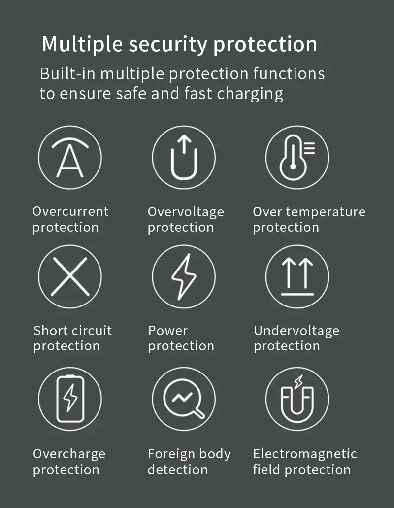 With intelligent protection technology and built-in intelligent chip, it provides over-voltage protection, over-current protection, short-circuit protection and over-heat protection to ensure absolutely safe and stable charging experience.